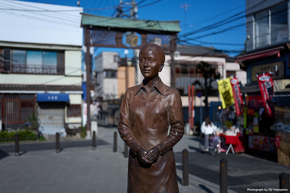 柴又、駅前広場のさくら像。